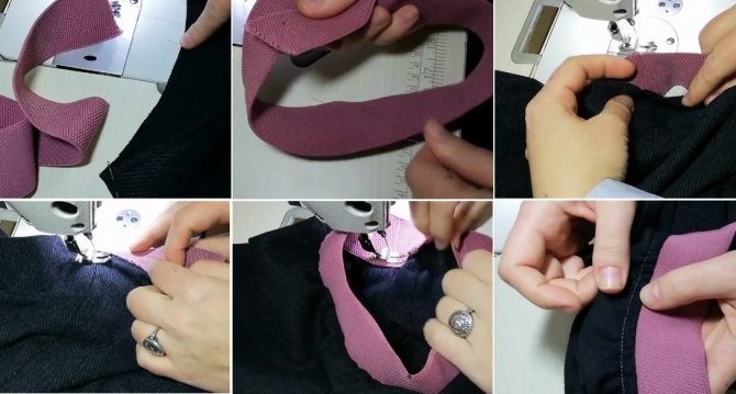 - Кулиска из ткани пришивается по линии прохождения пояска.